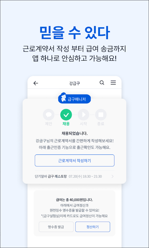 ▶사장님! 앱 하나로 근로계약서 작성부터 송금까지 가능해요.