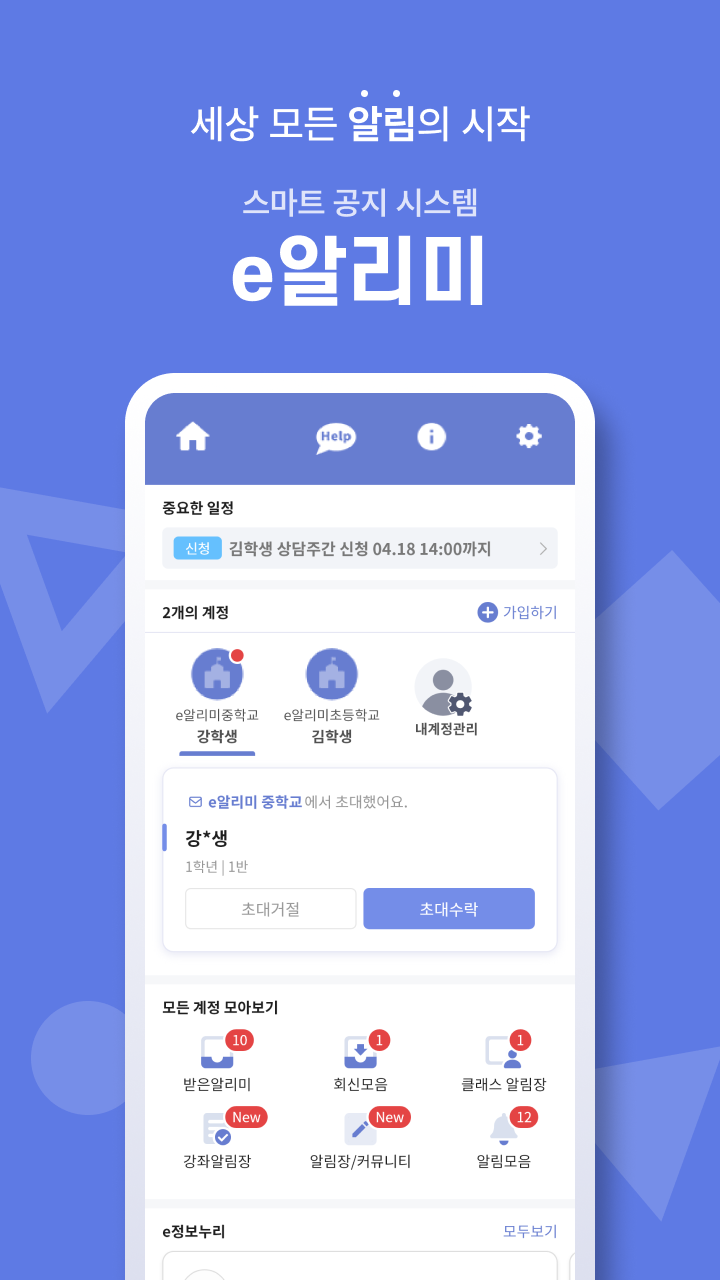 하지만 막상 사용하려고 하면 가입 방법부터 사용법, 자녀 추가, 방과후 신청까지 복잡하게 느껴질 수 있습니다. 그래서 제가 오늘 e알리미에 대한 모든 궁금증을 해결해 드리고, 검색 엔진 최상단에 노출될 수 있도록 꼼꼼하고 자세하게 정리해 보았습니다.지금부터 저와 함께 e알리미를 마스터해 볼까요?