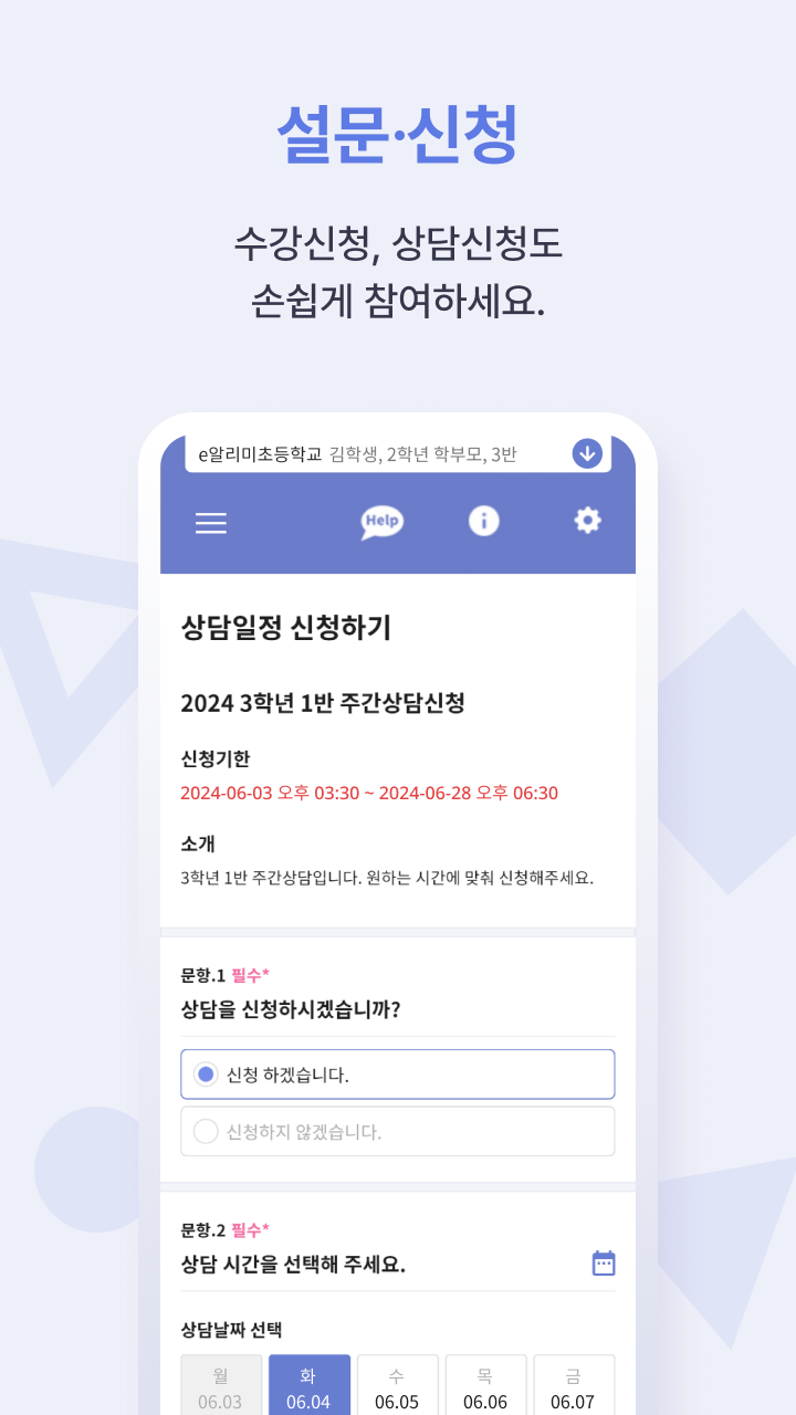 - 가정통신문 회신: 회신이 필요한 가정통신문에 대해 전자적으로 회신할 수 있습니다.